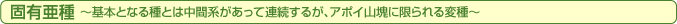 - 固有亜種 ~基本となる種とは中間系があって連続するが、アポイ山塊に限られる変種~
