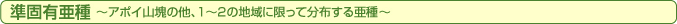 - 準固有変種 ~アポイ山塊の他、1~2の地域に限って分布する変種で、超塩基性岩地域や石灰岩地域に限って分布している植物~