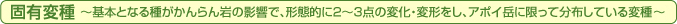 - 固有変種 ~基本となる種がかんらん岩の影響で、形態的に2~3点の変化・変形をし、アポイ岳に限って分布している変種~