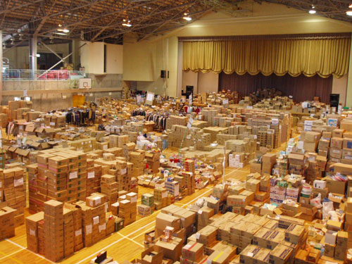 一言で言いますと、日本中から送られてくる物資の仕分け作業です。