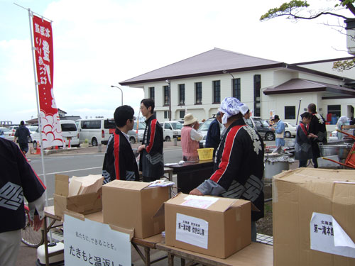 北海道から、登別第一滝本の職員による炊き出しボランティア「温返し隊」