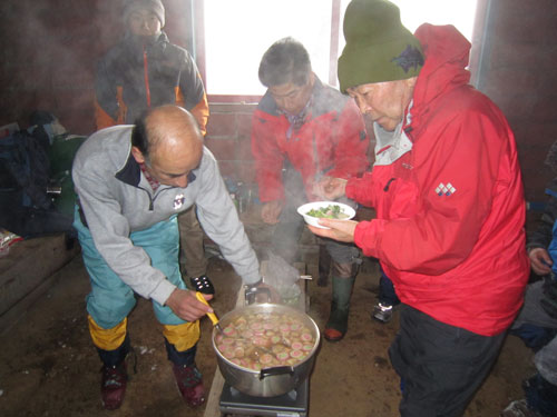 様似山岳会によるお雑煮のサービス。山で食べるお雑煮は本当においしかったです。御馳走様でした。