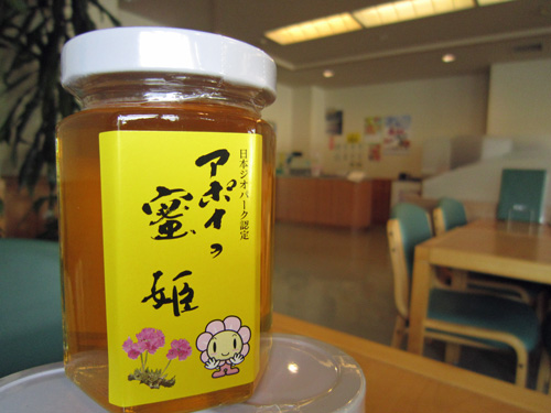 アポイの高山植物・サマニユキワリとその妖精アポイちゃんが描かれたラベルに書かれているのは、「アポイの蜜姫」の文字。そう、ハチミツです。