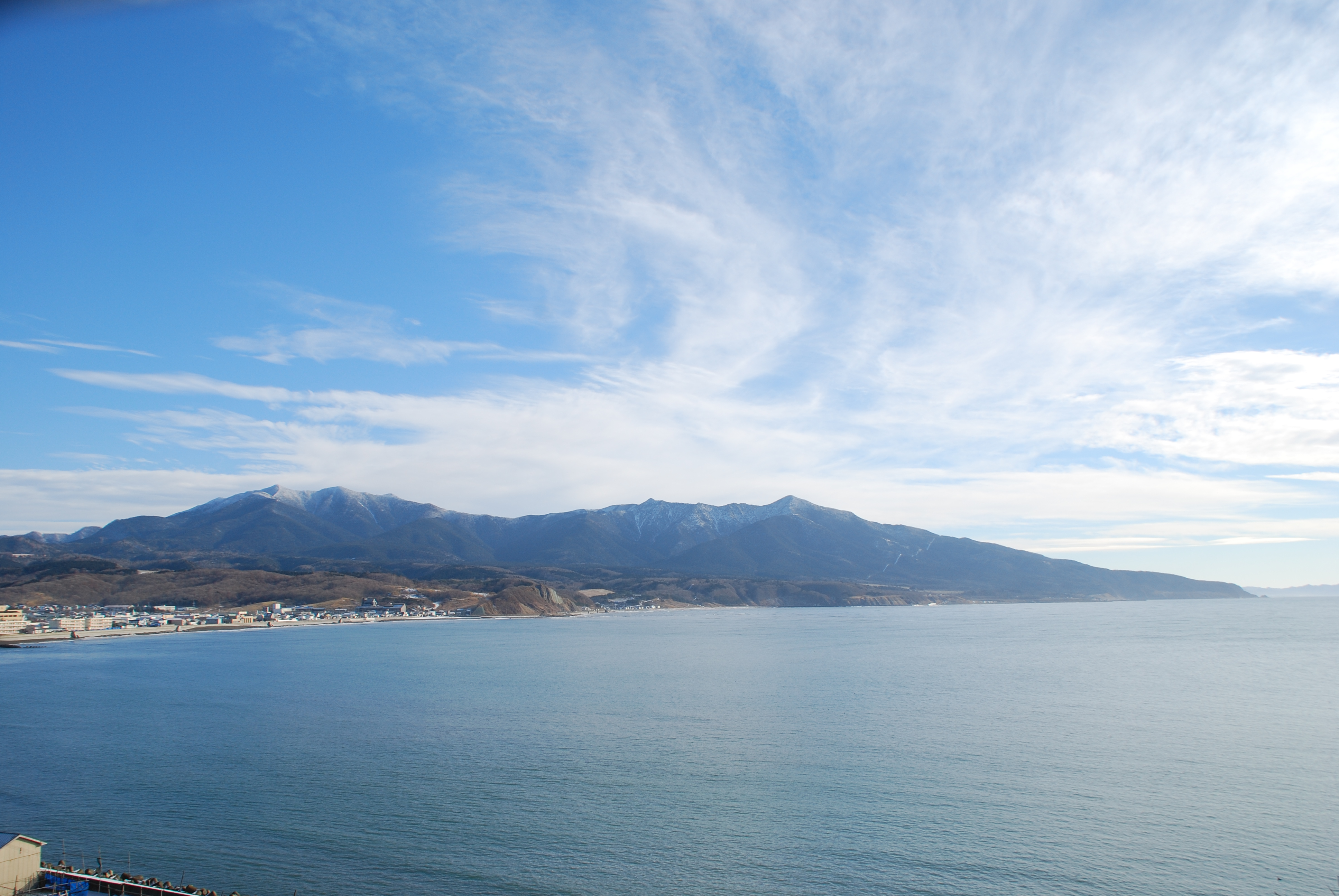 町のランドマーク・アポイ岳もこのとおり。薄っすらと白い帽子を被っています。