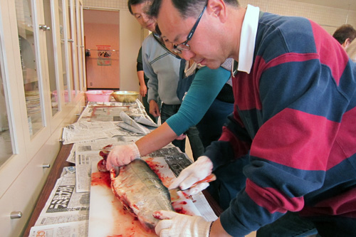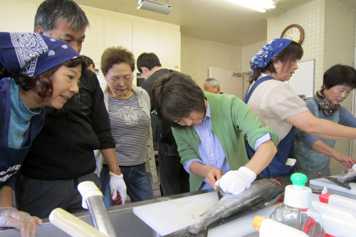初めてサケをさばいたかたもいましたが、日高中央漁協女性部
