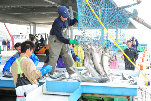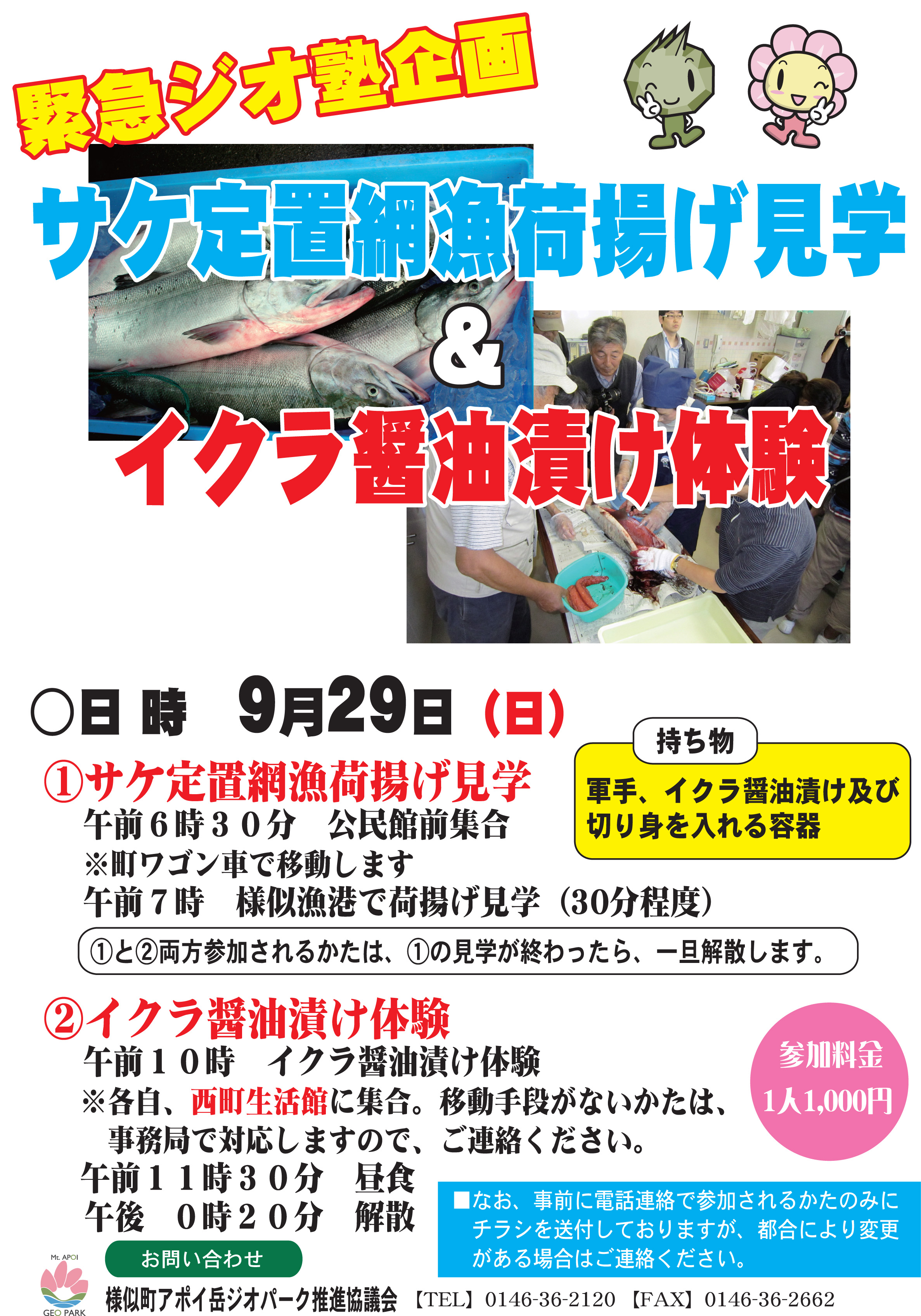 当初、観光客向けのジオツアー第3弾として、秋サケ定置網漁などを