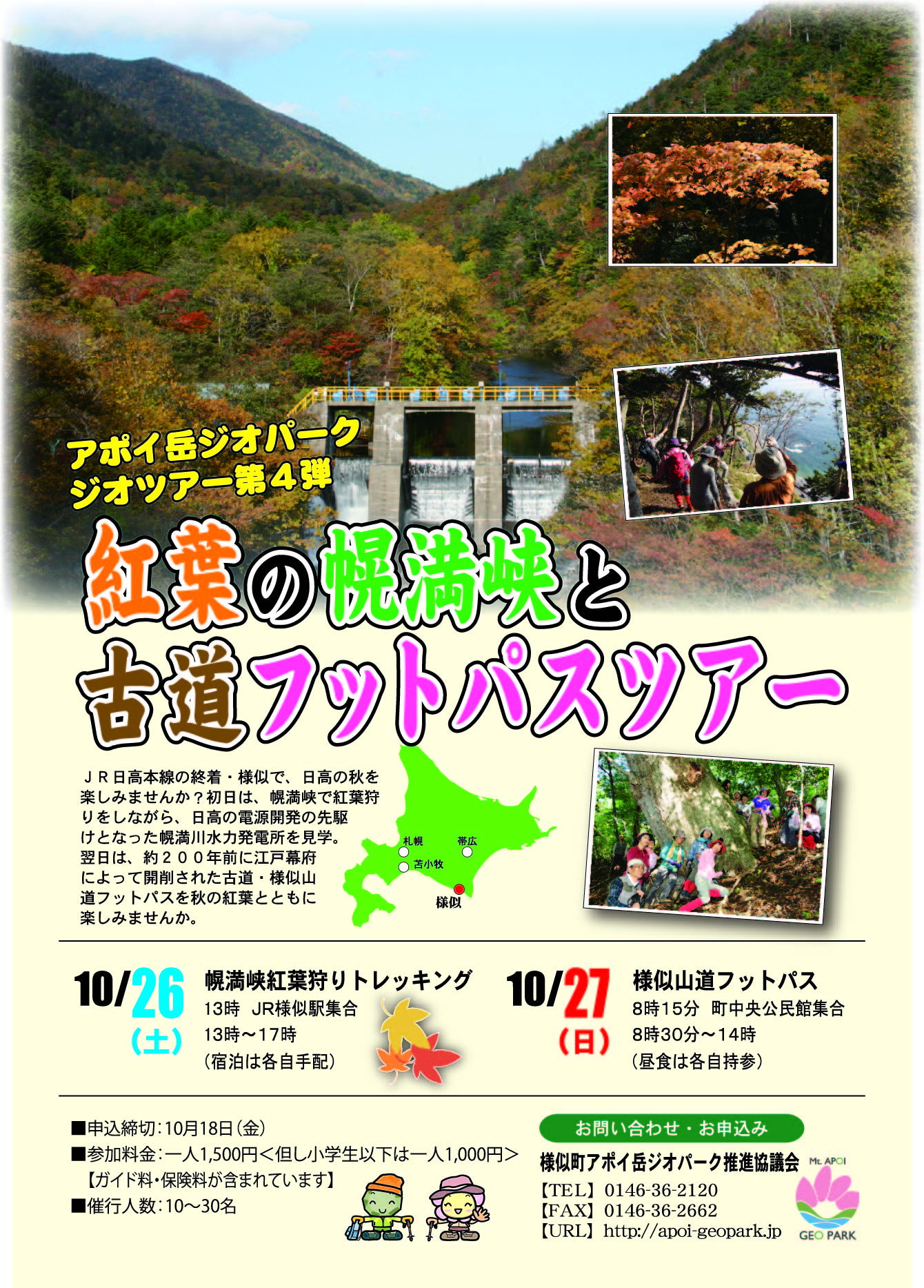 日程で、ジオツアー第4弾「紅葉の幌満峡と古道フットパスツアー」