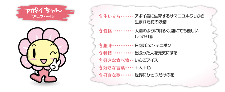 *ただし、使用に当たっての条件があります。詳しくは「アポイ岳ジオパークキャラクター等使用規程」をお読みください。