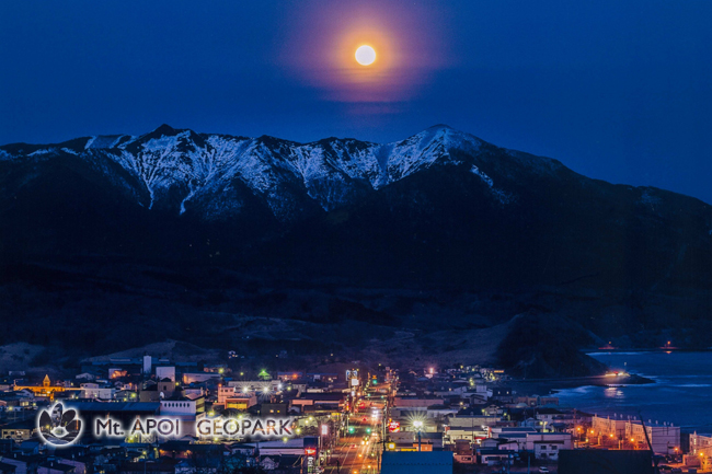 アポイ岳から満月の月が上がり、月明かり下の残雪のアポイ岳が印象的でした。その後、この月は高く上がり、月食になりました。