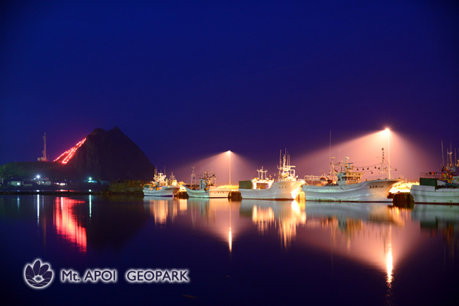 黄昏時の幻想的な様似港の光景をとらえました。