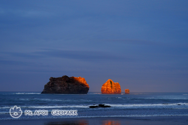 どんよりとした曇りの朝、ほんの一瞬だけ陽が射しました。 初めて見た神々しい瞬間に運よく出会いました。