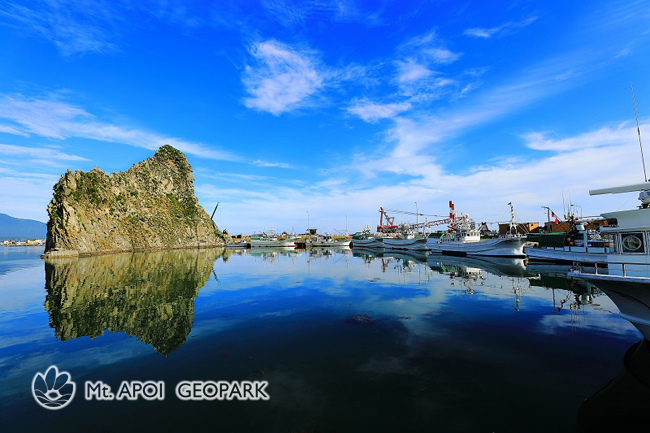 お天気もよく漁港のソビラ岩が水面に映りとても素敵です。また、係留された漁船達がのんびりと休んでおり、次の出漁を待っているようです。