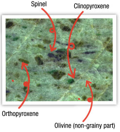 - Olivine content of more than 60% with a high proportion of orthopyroxene