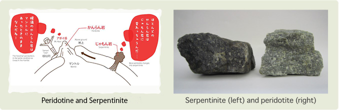 Most peridotite metamorphoses into serpentinite due to contact with water during its ascent from the mantle deep under the earth's surface. However, most peridotite on Mt. Apoi rose to the surface without metamorphosis. The existence of various peridotite types with different minerals in different combinations makes it scientifically valuable for the insight it provides into how magma is created and other matters relating to the earth's interior. Those found in this area are globally known as the Horoman peridotites.