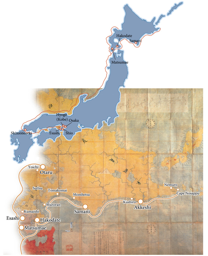 The shogunate government opened sea routes connecting Edo (now Tokyo) and Osaka with Ezo (as the northern Japanese island of Hokkaido was previously known). Dramatic development was seen along the western route, on which ships sailed through the Seto Inland Sea into the Sea of Japan and proceeded along the coast toward the north. Ezo marine transportation based in Matsumae and Hakodate covered large areas of the Pacific coast, bringing prosperity to various parts of the north.