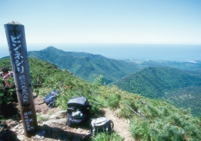 This spot can be accessed from Mt. Apoi or from the trailhead to Mt. Pinneshiri on the northern side. Climbers coming from Mt. Apoi will have passed a place where bamboo grass grows thickly in contrast to the vegetation of the surrounding areas. Although Mt. Pinneshiri and other peaks in the Apoi Mountains consist of peridotite, metamorphic rocks are distributed along a fault between Mt. Yoshida and Mt. Pinneshiri. The varying geological features here have led to the growth of different vegetation types.