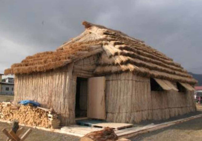 A traditional Ainu cise dwelling has been restored and preserved in the Okada district, which is just before the entrance to the Shintomi area. Cise were constructed using wooden frames, and the roof and walls were thatched using reeds and other types of grass. Despite Hokkaido’s cold climate, the interior of cise remained relatively warm because their walls and earthen floors retained heat from fires in traditional sunken hearths known as irori.
