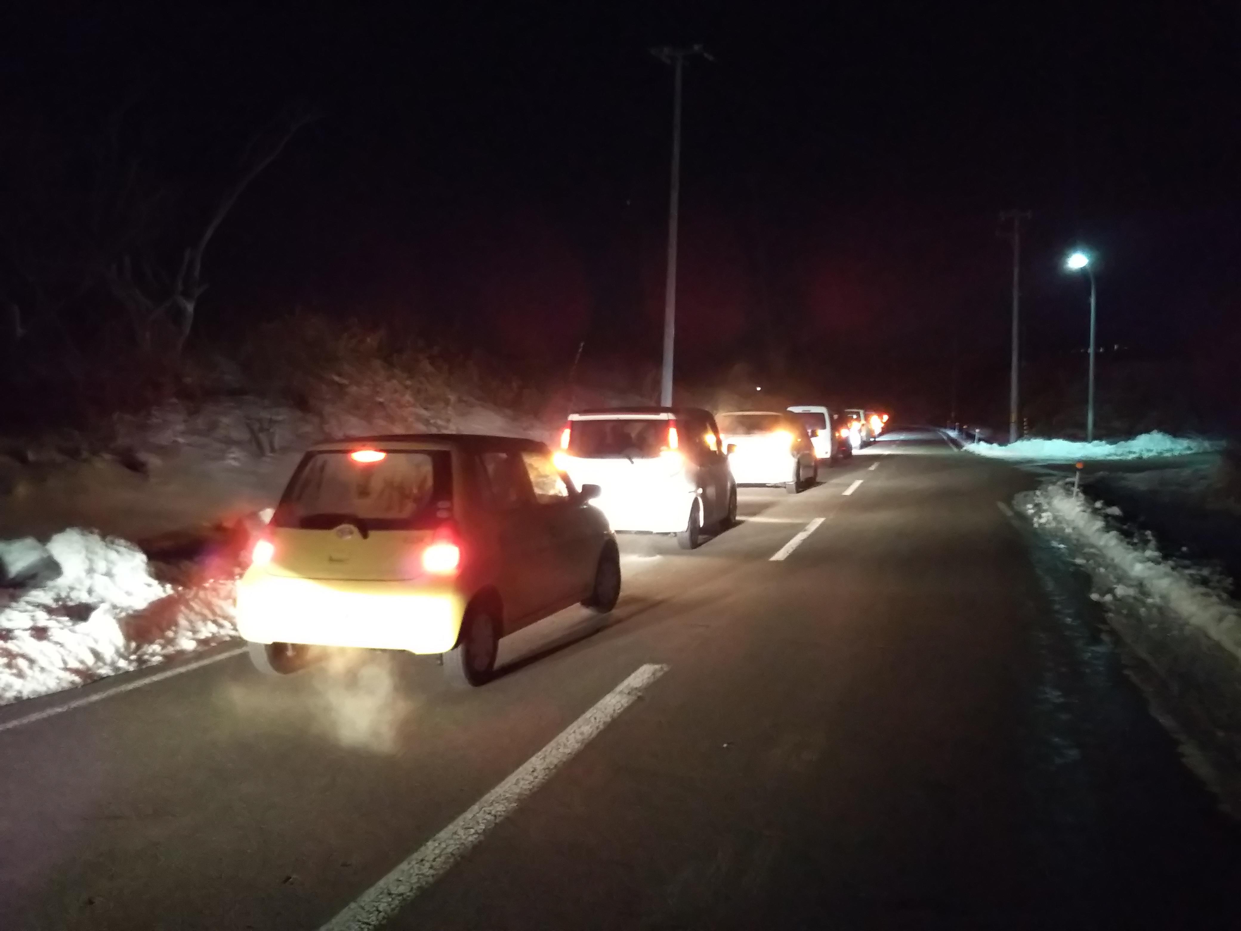 Jan 16, 12:45 AM, Cars lined up around Mt. Kannon