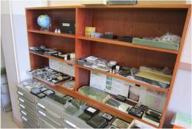 GeoLab Mt. Apoi, located in a renovated science classroom of the old Horoman Elementary School building, exhibits research materials owned by its Director Dr. Niida, who has studied the Horoman Peridotites for more than 40 years. It also has mineral and rock specimens as well as research equipment such as rock cutter, rock polishers, and microscopes. The lab provides opportunities for visitors to produce petrographic thin sections and gain other types of hands-on experience.