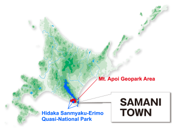 The Samani coast is known for its high-quality Mitsuishi Kombu kelp (Laminaria angustata). Kelp can typically be seen drying all over the town on clear summer days, and is shipped nationwide under the commercial name of Hidaka Kombu.