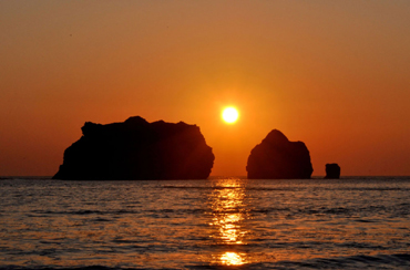 - The Oyako-iwa Rocks rising from the Pacific are a symbol of Samani. The area is popular with beachgoers in summer, but has a different appearance in winter with spectacular sunset views. As the sun goes down behind the rocks during the cold season, rays of light shine through the gaps between them onto the sea against a crimson sky, creating a truly awesome sight. The Oyako-iwa (meaning "parent-and-child rocks") are the subject of an Ainu legend about the strong bond between parents and children. Making a wish here during sunset is said to bring family happiness.