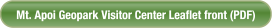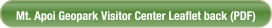 The Mt. Apoi Geopark Visitor Center provides information to maximize enjoyment of the geopark through exhibits, video and commentary on Samani's geological and geomorphological characteristics, natural environment, history, culture and industry. It also provides real-time information on alpine plants, brown bears and other things to make climbing Mt. Apoi a safe and pleasant experience.