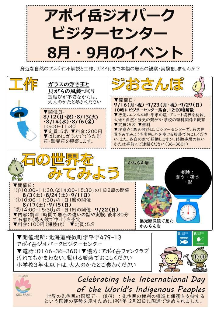 アポイ岳ジオパークビジターセンター8月・9月のイベント