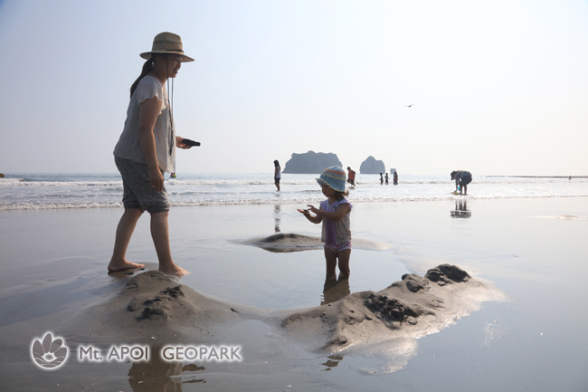 昨年8月に様似町を訪れた時、親子岩ビーチで遊ぶ母子に魅せられ、了解を得て写真を撮らせて頂いた。