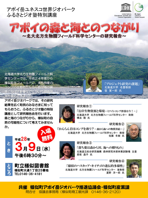 2016.03.09 ふるさとジオ塾特別講座 「アポイの森と海とのつながり」(3/9)