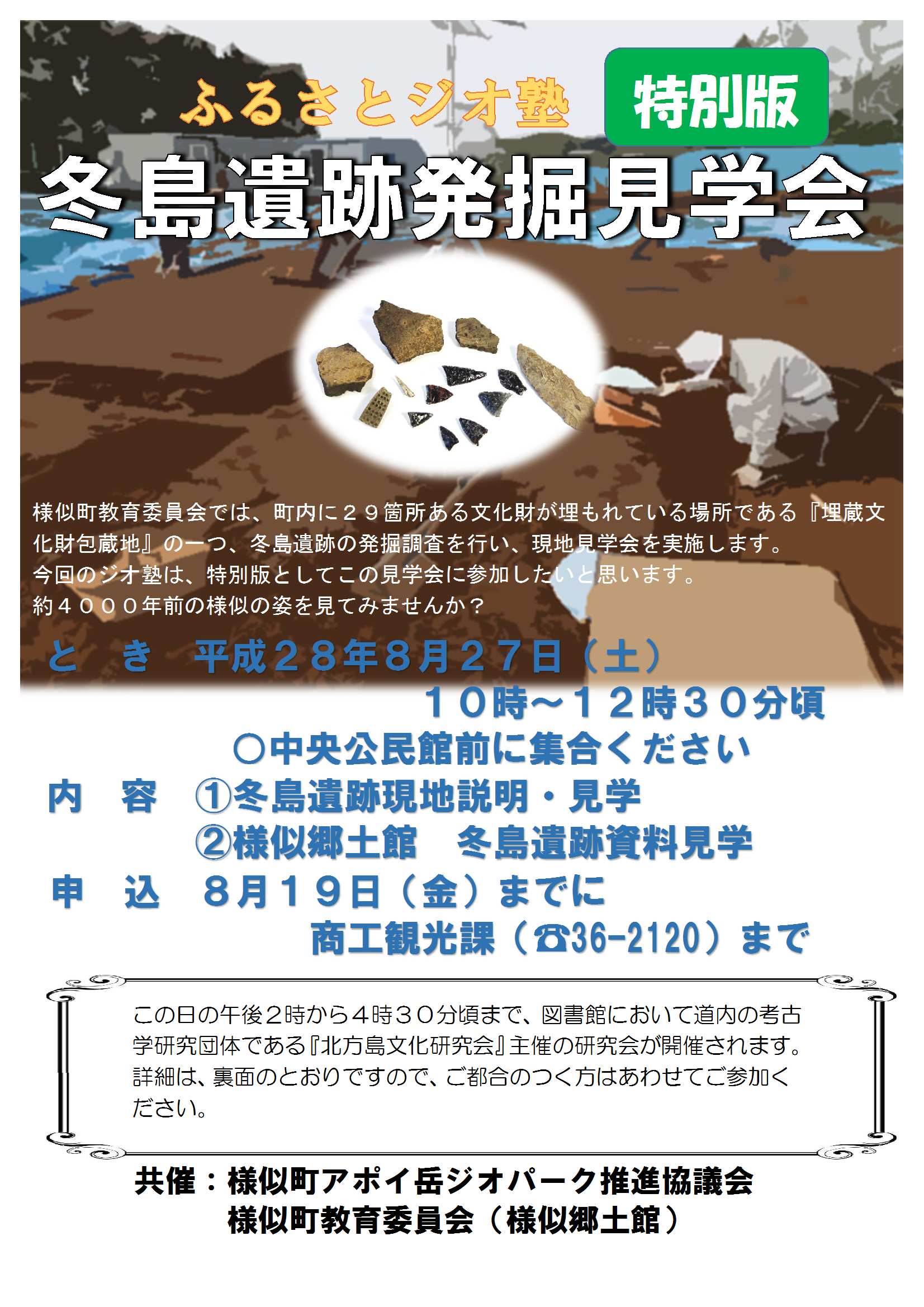 2016.07.26 ふるさとジオ塾特別版「冬島遺跡発掘見学会」のお知らせ