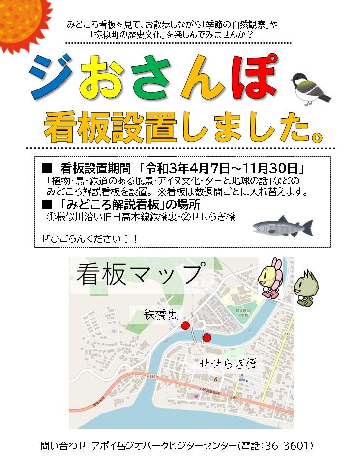 2021.04.13 様似川沿いにジおさんぽ看板を設置しました