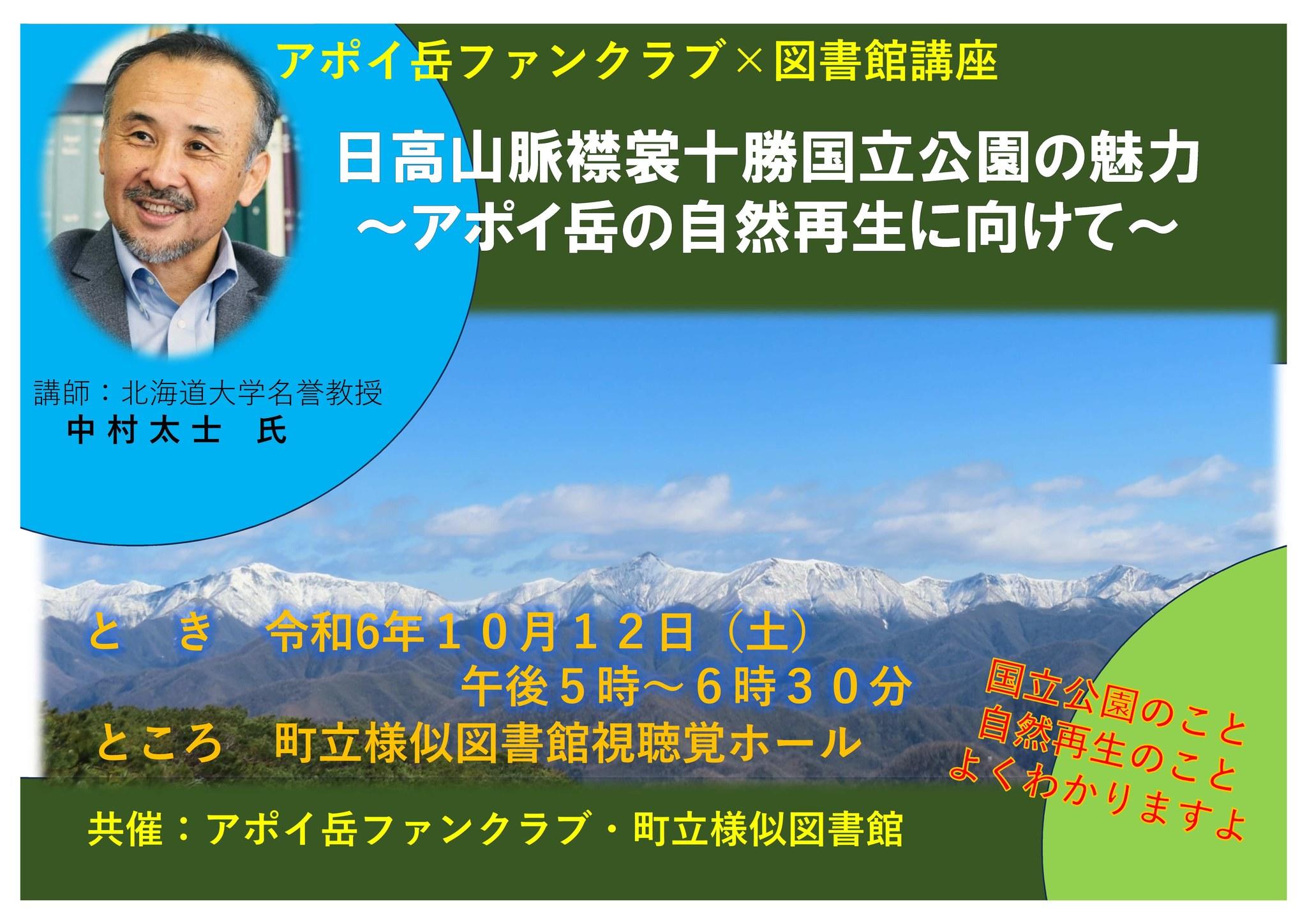 2024.10.12 【10/12】アポイ岳ファンクラブが図書館講座「日高山脈襟裳十勝国立公園の魅力~アポイ岳の自然再生に向けて~」を開催します