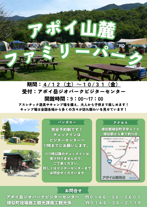 今年もアポイ山麓ファミリーパークを開設します!
