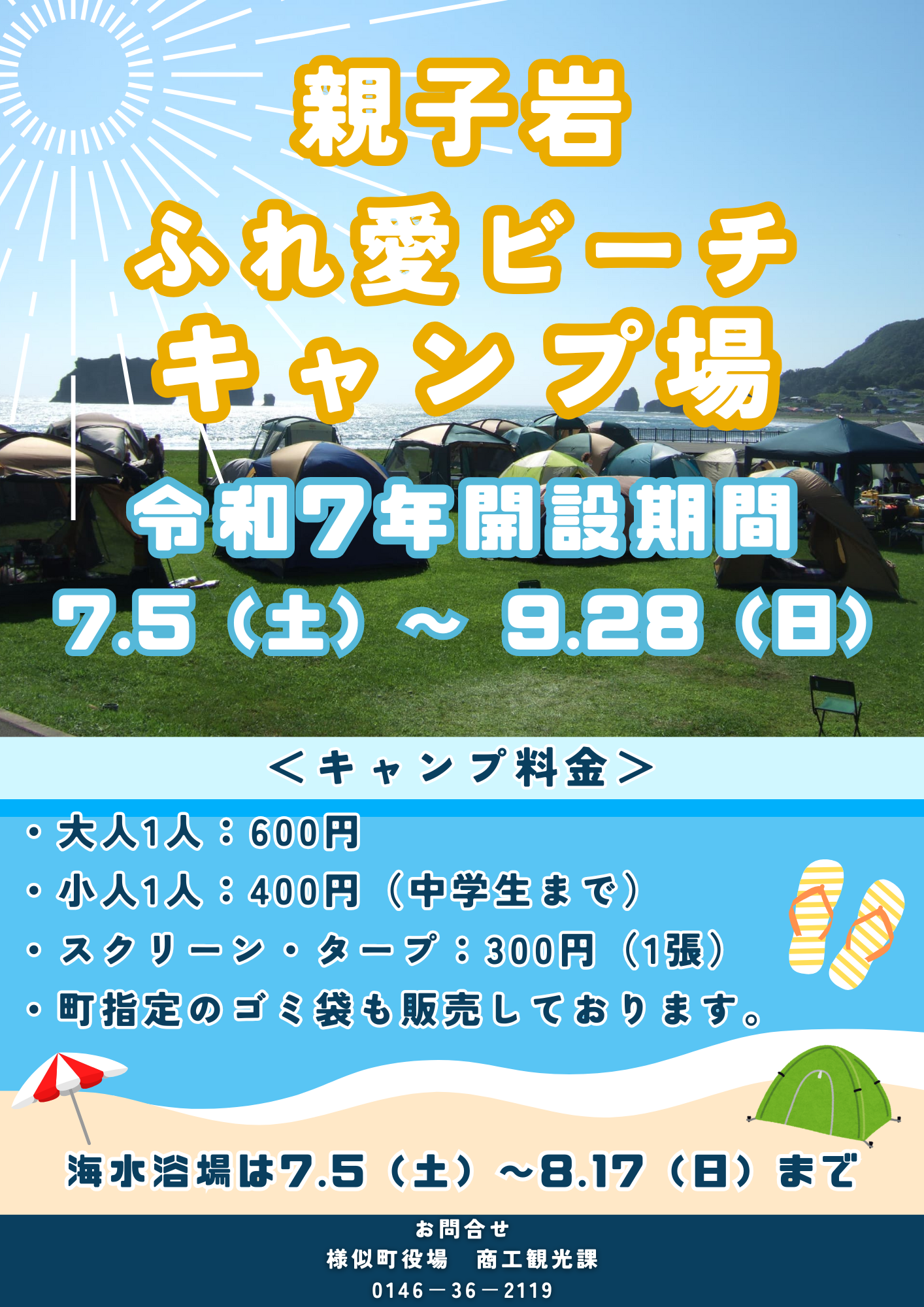 2025.07.05 親子岩ふれ愛ビーチキャンプ場・海水浴場の開設期間について