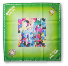 かんらん岩の薄片写真(偏光顕微鏡撮影)をあしらった一枚。これを付けてアポイ岳を登ろう!
