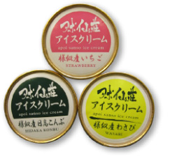 様似産の日高昆布、山わさび、そしてイチゴを使った3種類のオリジナルアイス
