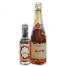 「エマウリ」とは、アイヌ語でイチゴのこと。すっきりとした味わいが好評の、様似産ケーキ用イチゴ(すずあかね)を使ったスパークリングワインです。小ボトルは、微炭酸のノンアルコール。